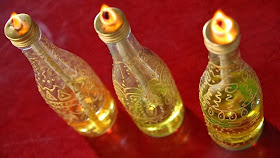 Wij gaan het hier even gezellig proberen maken met Marokkaans getinte olielampen, gemaakt uit wijnflesjes!